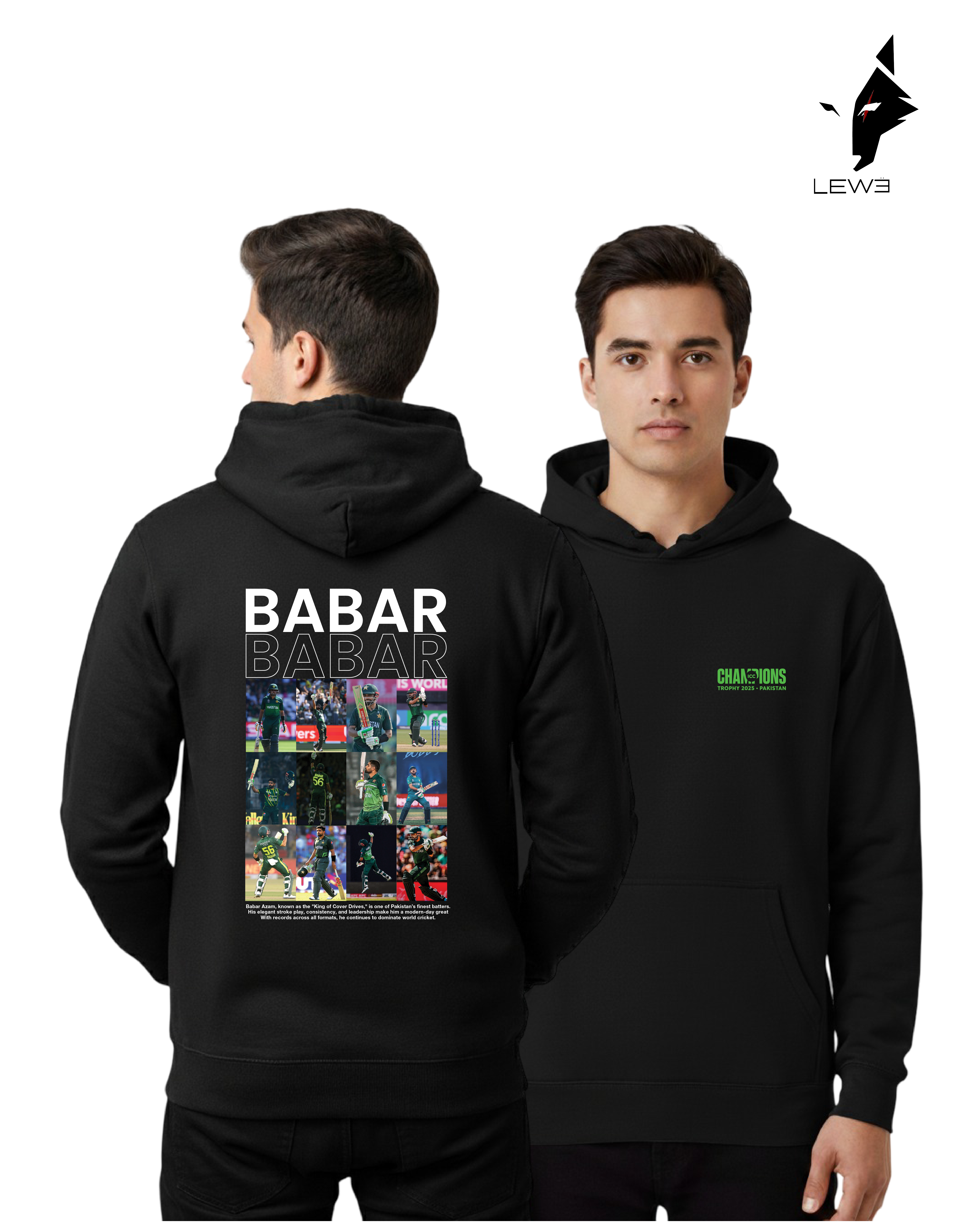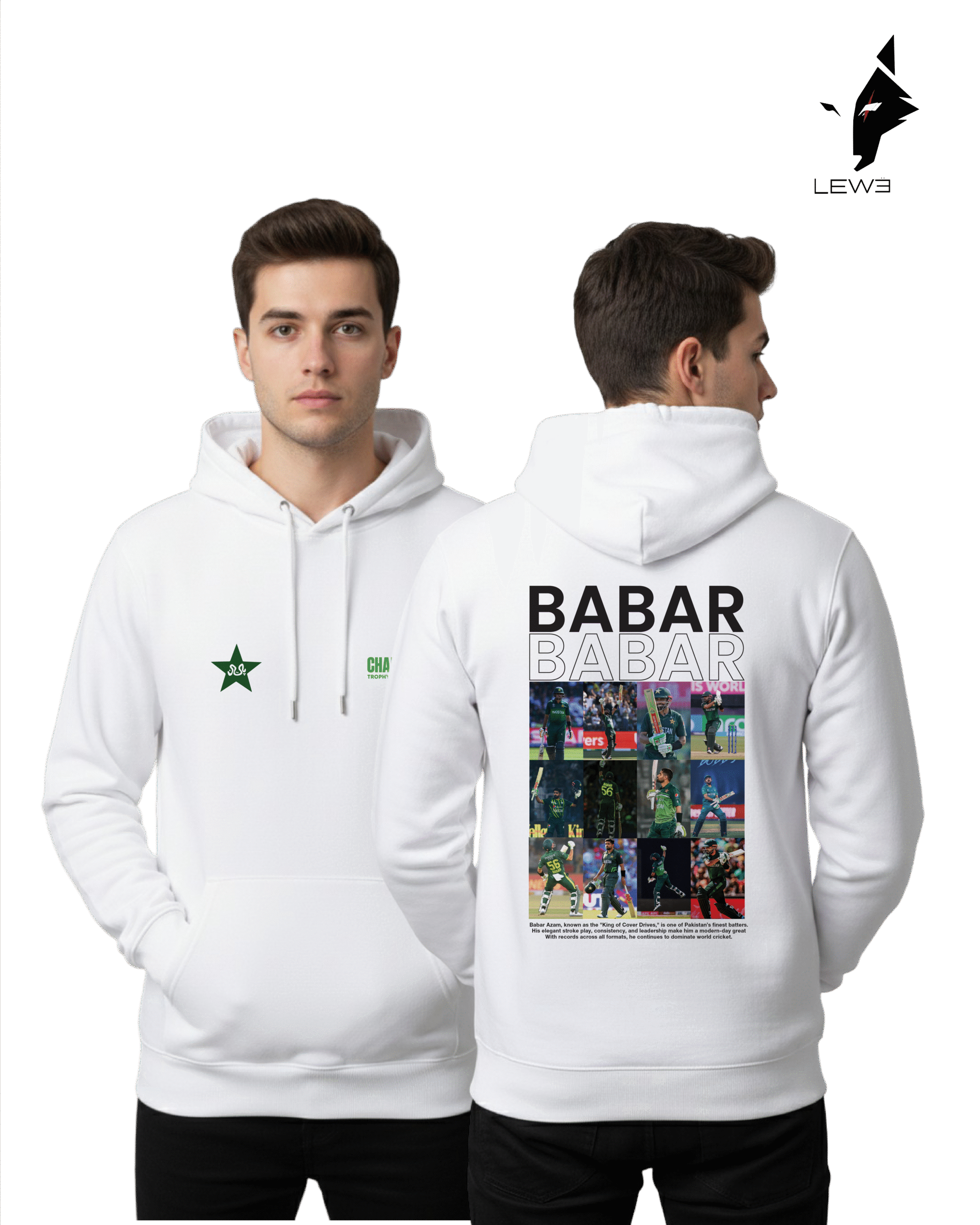 Just like Babar’s elegant drives, this hoodie reflects precision, calm, and excellence. Whether you’re watching the match, heading out with friends, or training, it’s your perfect statement of cricket passion and national pride.